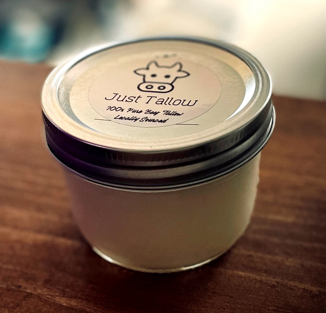 Locally sourced, Grass-fed rendered beef tallow is a nutrient-rich, pure cooking fat derived from the fatty tissue of cattle that have been raised on a natural grass diet. This traditional, shelf stable fat boasts a rich, slightly beefy flavor and is prized for its high smoke point, making it ideal for frying, roasting, baking, grilling, and sauteing. Unlike conventional cooking oils, grass-fed tallow is known for its impressive profile of healthy fats, including omega-3 fatty acids and conjugated linoleic acid (CLA), which are linked to various health benefits. Its smooth, creamy texture and long shelf life make it versatile not only in cooking but also in creating natural skincare products. (see our Whipped Tallow products!)