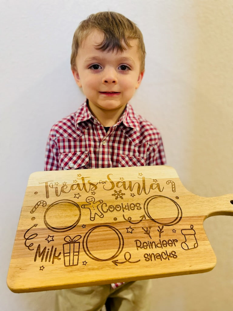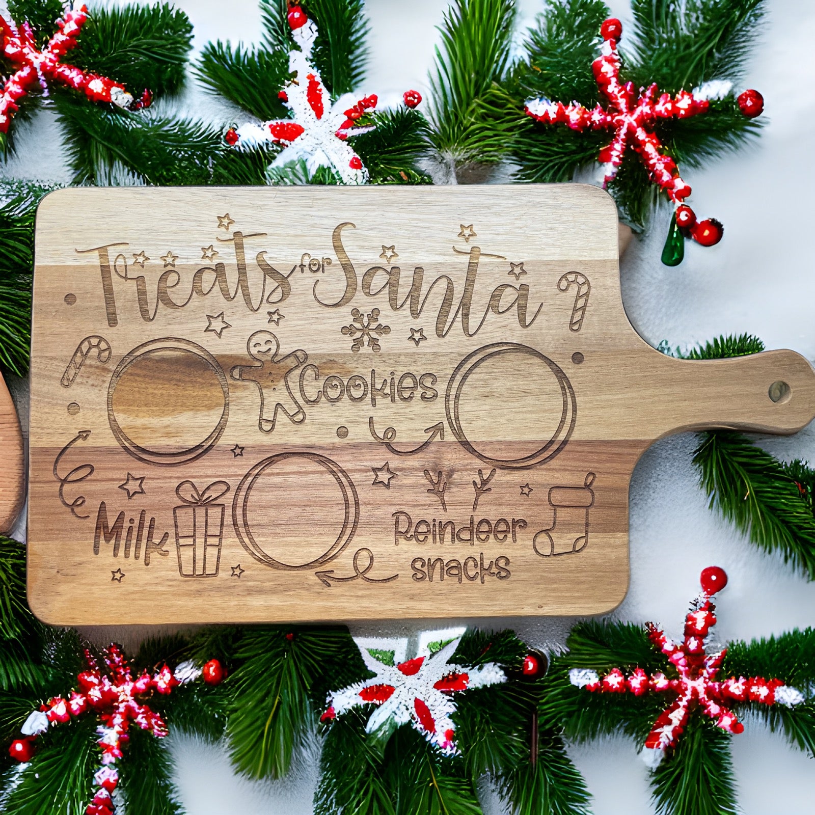 Make Christmas Eve magical with our Treats for Santa Tray, designed to delight the whole family and make your holiday traditions extra special. This charming wooden tray features designated spaces for milk, cookies, and even a spot for reindeer snacks, ensuring Santa and his loyal reindeer feel welcomed and cherished.
