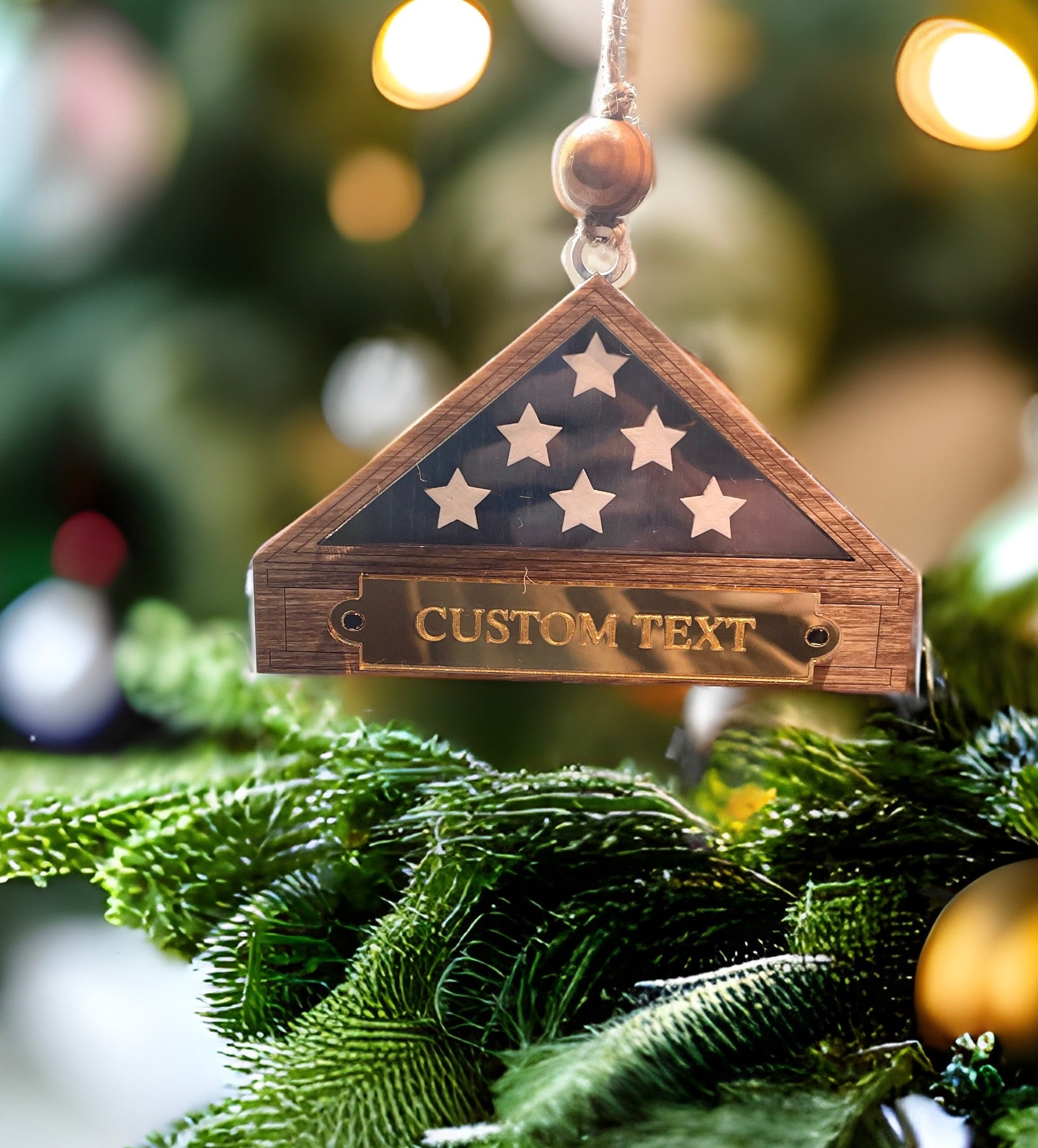 Crafted with precision and care, the ornament features a customizable gold nameplate where the name of your hero, or a special date can be engraved. Perfect for holiday trees or as a year-round keepsake, this ornament is a heartfelt way to preserve their memory and celebrate their unwavering dedication to our nation.